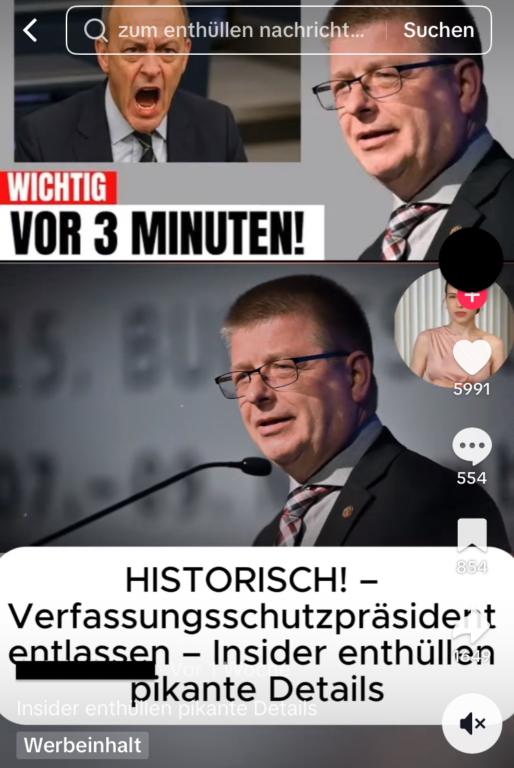 Vor diesem Hintergrund kursiert seit Mitte Mai ein virales Video auf Tiktok und Facebook, das unter anderem Bundeskanzler Friedrich Merz und Ex-Verfassungsschutzchef Thomas Haldenwang zeigt. Dazu heißt es: Der Präsident des Bundesamts für Verfassungsschutz sei mit sofortiger Wirkung entlassen worden. Doch das stimmt nicht. Haldenwang verabschiedete sich bereits Ende 2024 in den Ruhestand.