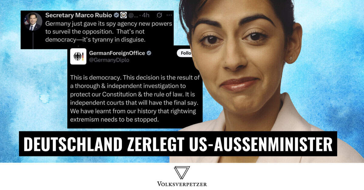 Der Verfassungsschutz hat – spät, aber völlig zu Recht – die AfD als gesichert rechtsextrem eingestuft. Die US-Faschisten finden das natürlich nicht gut und der US-Außenminister Marco Rubio jammert über die Demokratie. Die Bundesregierung kontert ihn exzellent.
