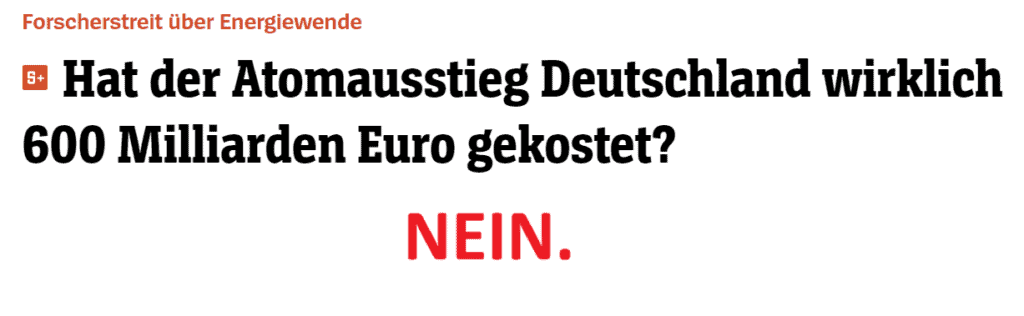 Letzte Woche konnten wir in der WELT die absolute Gaga-Behauptung lesen, eine 75%-Atomkraft-Strategie ab dem Jahr 2002 hätte uns 600 Milliarden Euro gespart. Grundlage ist eine Gefälligkeitsstudie, dessen katastrophale Methodik zu so falschen Zahlen führt, dass echte Experten auf dieser Grundlage nicht mal eine Detailanalyse für zielführend hielten! Klimawandel-Verharmloser, Desinformation,…