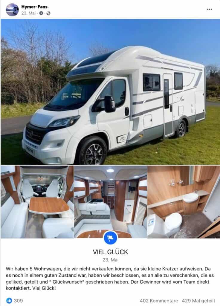 Dieser Artikel stammt von CORRECTIV.Faktencheck / Zur Quelle wechseln Kleine Kratzer an Wohnwagen der Marke Hymer seien der Grund dafür, dass angeblich fünf davon verlost würden, heißt es in einem Facebook-Beitrag. Dieser müsse dafür geliked, geteilt und mit „Glückwunsch“ kommentiert werden. Das ist eine bekannte Masche bei gefälschten Gewinnspielen. Dem…
