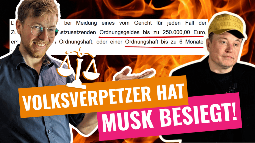 2.880 Volksverpetzer gewinnt gegen X! Muss Musk in den Knast? von Thomas Laschyk | Dez. 19, 2025 | Aktuelles Wir haben gegen X – ehemals Twitter – geklagt. Und in einem wesentlichen Punkt gewonnen! Musk bzw. X wollen sich nicht an deutsches Recht halten. Unser Erfolg könnte sogar zu einem Ordnungsgeld von bis zu…