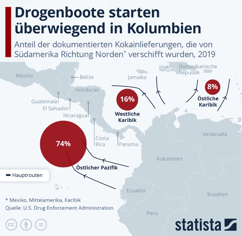 Oft wird derzeit analysiert, dass Trump Maduros vermeintliche Verwicklungen in Drogenschmuggel (wofür er jetzt unter anderem in New York vor Gericht steht) nur als Vorwand nutzte, um an Venezuelas Öl zu kommen. Trump selbst hat keinen Hehl daraus gemacht, dass die USA wieder mehr venezolanisches Öl wollen. Zwar wurden auch über Venezuela Drogen in die USA geschmuggelt, aber bei weitem nicht so viele wie über andere Routen. Gleichzeitig muss auch gesagt werden, dass es unmöglich ist, alle Drogenschmuggelrouten zu kennen, und wir daher nicht zu 100 % sicher sein können, welche die Hauptdrogenrouten sind.