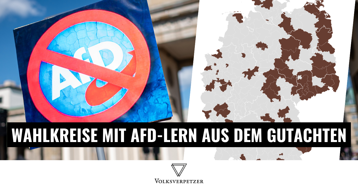 Das heißt auch, dass viele Städte und Gemeinden in Deutschland jetzt über ihren Wahlkreis durch eine:n AfD-Abgeordnete:n vertreten werden, welcher:r nicht nur Mitglied einer gesichert rechtsextremen Partei ist, sondern sogar persönlich dazu beigetragen hat, dass diese Hochstufung passiert ist. Wir haben eine Übersicht mit allen Wahlkreisen, die nun (unter anderem) von einer Person vertreten werden, die im Gutachten namentlich benannt wird. Hier könnt ihr überprüfen, ob auch eure Heimatstadt bzw. euer Wahlkreis dabei ist: