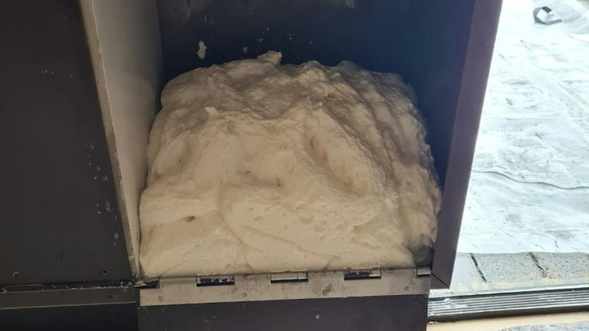Der Briefkasten wurde mit Bauschaum verwüstet.