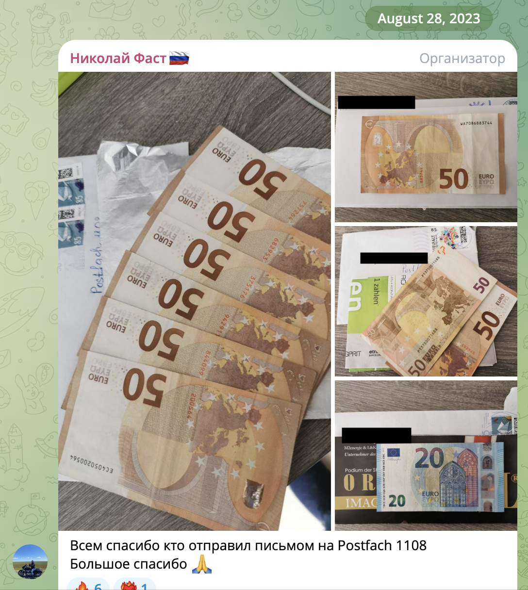 Neben dem Postfach gibt es weitere russische Zahlungsweise, die über Nikolai Fast laufen. Es gibt sogar einen Paypal-Account, der offenbar bereits mehr als ein Jahr lang für diese Zwecke genutzt wird. Das Geld aus dem Postfach wird offenbar auch direkt nach Russland geschickt. Wer das heute macht, das geht aus der Gruppe nicht hervor. Zeitweise waren die Geldempfänger jedoch ganz offen mit Adresse einsehbar. Fast selbst kann es allerdings nicht sein.
